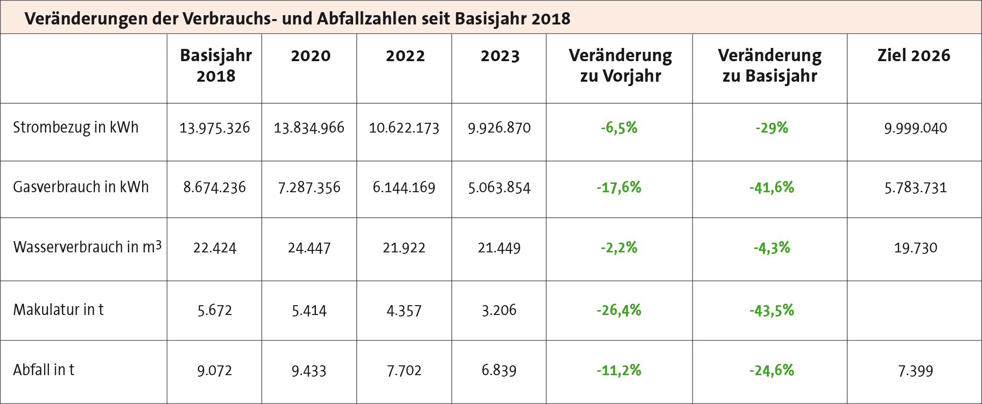 Dies erreichen wir durch ein integriertes Managementsystem, basierend auf der Richtlinie der ISO 9001 und durch die Prinzipien der ISO 14001, ISO 50001 und EMAS ergänzt wird. Die Effektivität unseres Nachhaltigkeitsmanagements wird zusätzlich durch unsere transparente Berichterstattung gestärkt. Mittels der jährlichen extern zertifizierten Veröffentlichung unserer EMAS-Umwelterklärung und des Deutschen Nachhaltigkeitskodex (DNK) gewährleisten wir eine offene Kommunikation über unsere Fortschritte und Herausforderungen im Bereich Nachhaltigkeit.
